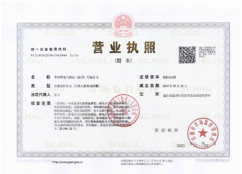 普爾特電氣科技(溫州)有限公司